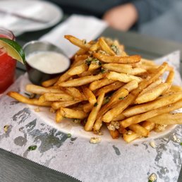 Came in to celebrate my brother's birthday. Looked pretty busy but they seemed to always have seating. We did stand for a while before being sat. We had a big party while the ones ahead of us were just a party of 2s. They were standing for a bit as well. When we were sat there was a lot of room for us. The server was attentive during the beginning but near the end I had to get up to get her attention for to go boxes and the check. Food was good but they seemed to use the same bread for everything like they had complimentary bread with butter and the fam asked for vinaigrette and oil. When the pizza came the bread tasted the same as well as my steak sandwich bread so we all didn't finish the main meals. The appetizers were all gone. We had fried Brussel sprouts and calamari. I didn't try the calamari but the adults at my table ate it all. My steak sandwich meal came with fries and for a small fee made it garlic fries. All was delicious as leftovers so everything was eaten over time. My dish had a random romaine lettuce leaf with a slice of tomato. I'm guessing to pretty up the dish or a filler to look complete or add to my sandwich. It came home with me but I added that random extra to my salad since it was also romaine lettuce and tomato included as well. The pizza was good. I wanted to try the one that had pepperoni but had gotten full and my mom ate it so I wasn't able to try it. I would suggest this place to take the family to eat after an outing like we did which was cherry picking. Parking was busy but we found a spot. They need more than one handicapped parking spot though, my suggestion.